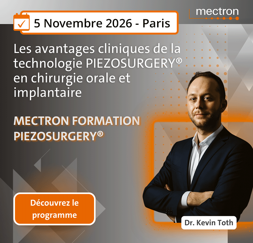 Participez à la formation en chirurgie orale et implantaire avec le Dr Kévin Toth, pour découvrir les avantages cliniques de la technologie PIEZOSURGERY®, le jeudi 5 novembre 2026 à Paris.